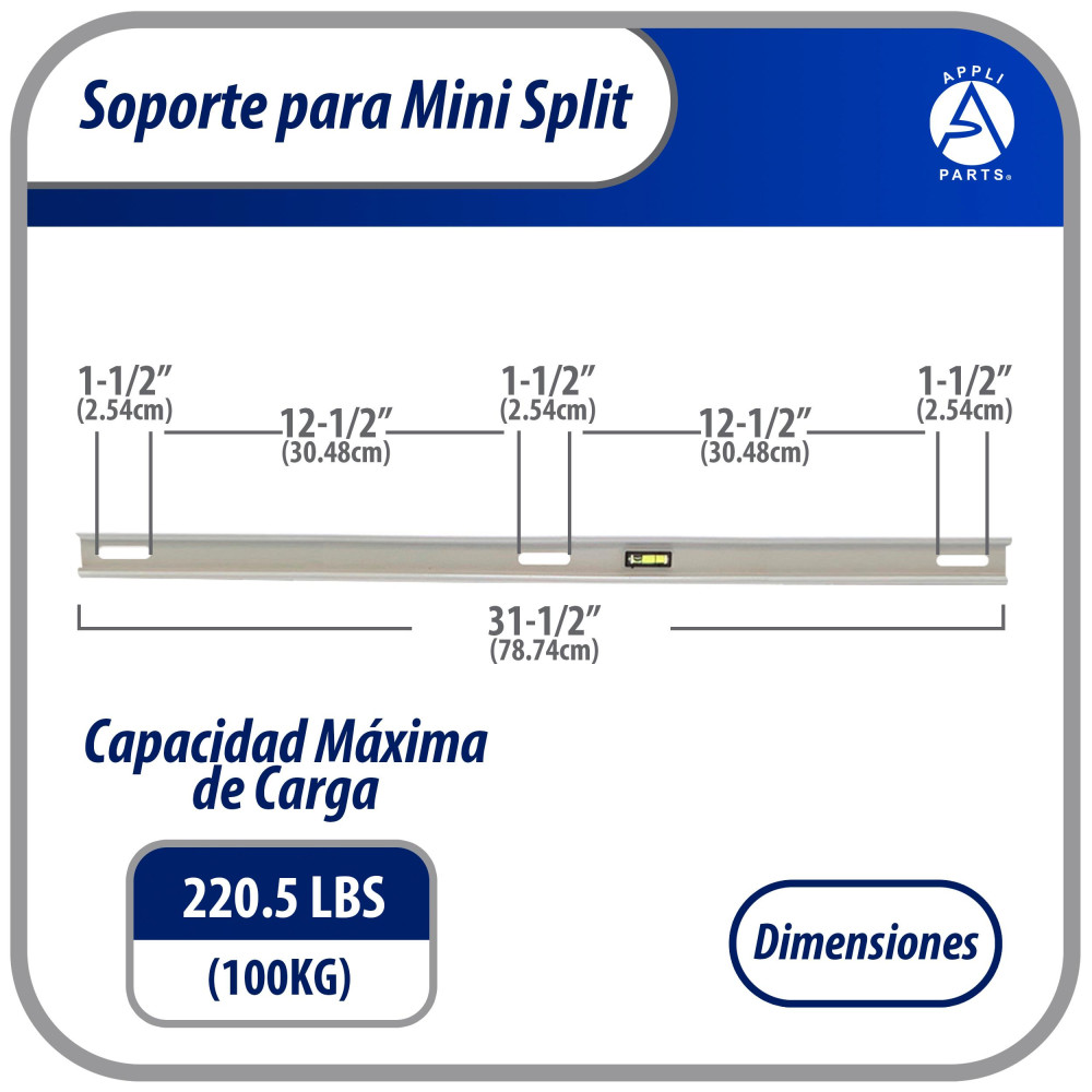 Appli Parts APAB-3160 Soporte de Montaje en Pared para Mini Split. Soporta hasta 160 kg, Compatible con 5000 a 36000 BTU, Incluye Barra con Nivel, Gomas Antivibracion y Kit Completo de Instalacion