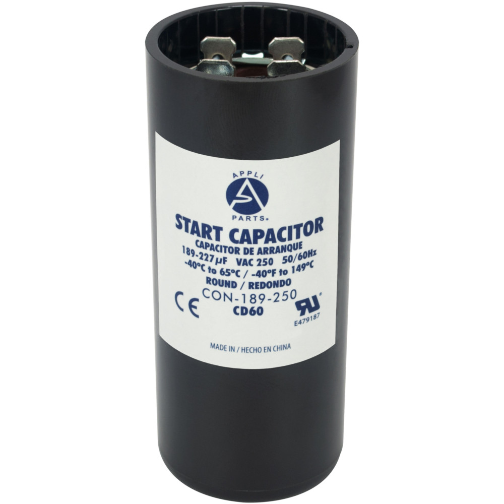 Appli Parts CON-189-250 Capacitor de Arranque 189-227 MFD (microfaradios) uF, 250 VAC. Universal para Motores Electricos, condensador de arranque de 3.7 cm de Diametro, 8.6 cm de Alto