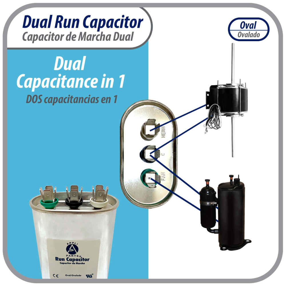 Universal: Remplaza cualquier marca con la misma capacitancia y voltaje. Funciona con 370V. Conectores de 1/4 pulg