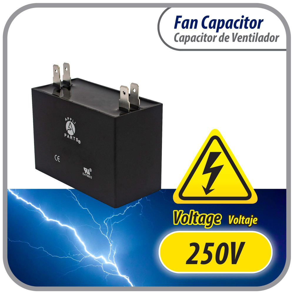 Appli Parts CAP-15-250 Condensador Capacitor de ventilador 15 mfd microfaradios uf 250VAC con conectores compatible con cualquier marca de igual capacitancia 5.8cm Ancho 2.2cm Profundidad 4.3cm Alto