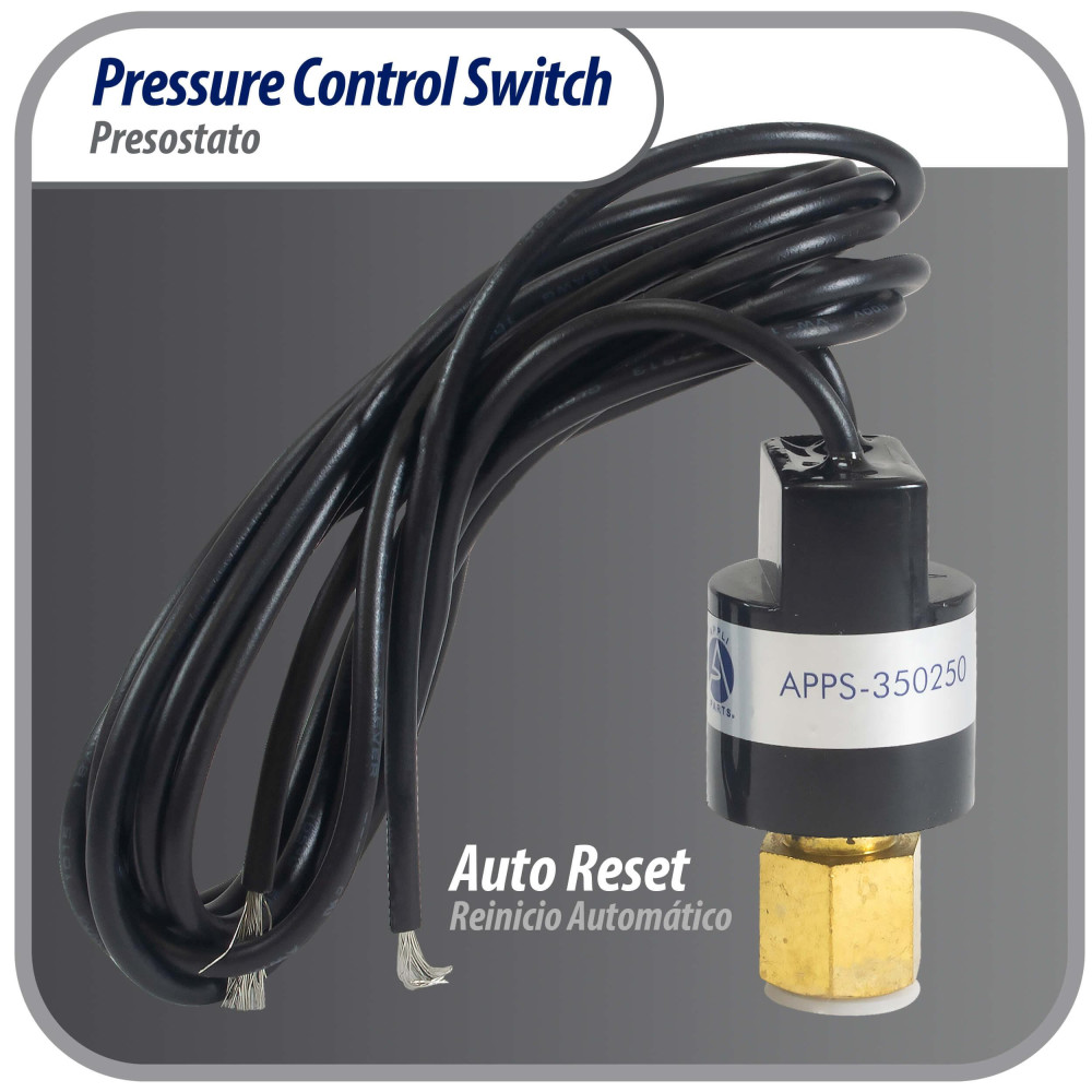 Appli Parts APPS-350250 Valvula Presostato R22 Alta, Abre 350 psi, Cierra 250 psi, 1 m Cable, SPST, 1/4 SAE Hembra, Reset Automatico, remplazo Universal para Aire Acondicionado Uso: Para sistemas de aire acondicionado en R22 Caracteristicas: Un polo un tiro, Reinicio automatico, Abre a 350psi y cierra a 250psi, cable de 1m. Construccion sellada de fabrica a prueba de manipulaciones Construccion: Fabricado siguiendo altos estandares de calidad para cumplir con las especificaciones de fabricantes originales Instalacion: Montaje directo en el puerto de presion abocinado Verifique que las dimensiones y otras caracteristicas del producto sean similares al producto original que esta remplazando