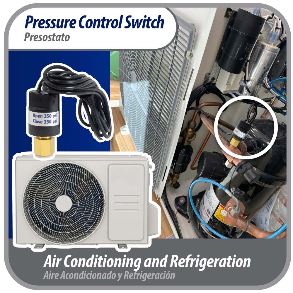Caracteristicas: Un polo un tiro, Reinicio automatico, Abre a 350psi y cierra a 250psi, cable de 1m. Construccion sellada de fabrica a prueba de manipulaciones