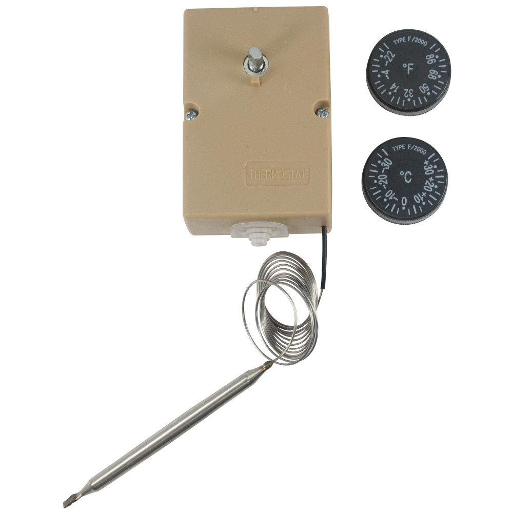 Appli Parts APRT-711 Termostato de Refrigeracion, con Temperatura minima de -35 C (-31 F) y temperatura maxima de +35 C (95 F), tubo capilar de 1200 mm y bulbo de 10.5cm modelo F2000 16A a 250V Uso: Control de temperatura para ser utilizados en refrigeradores, neveras, congeladores, exhibidores frios y otras aplicaciones Especificaciones: con Temperatura Minima de -35C (-31F) y temperatura maxima de +35C (95F), con tubo capilar 1200mm (47.25in), incluye 2 diales en Centigrado y Fahrenheit Caracteristicas: SPST cierra al aumento de temperatura, diferencial de temperatura fijo Bricolaje: Alentamos la contratacion de Tecnicos Especializados. El cambio de esta pieza es de dificultad media en algunos casos. Recomendamos que contacte a su tecnico de confianza. Recuerde desconectar el equipo de la corriente electrica antes de su manipulacion Verifique que las dimensiones y otras caracteristicas del producto sean similares al producto original que esta remplazando