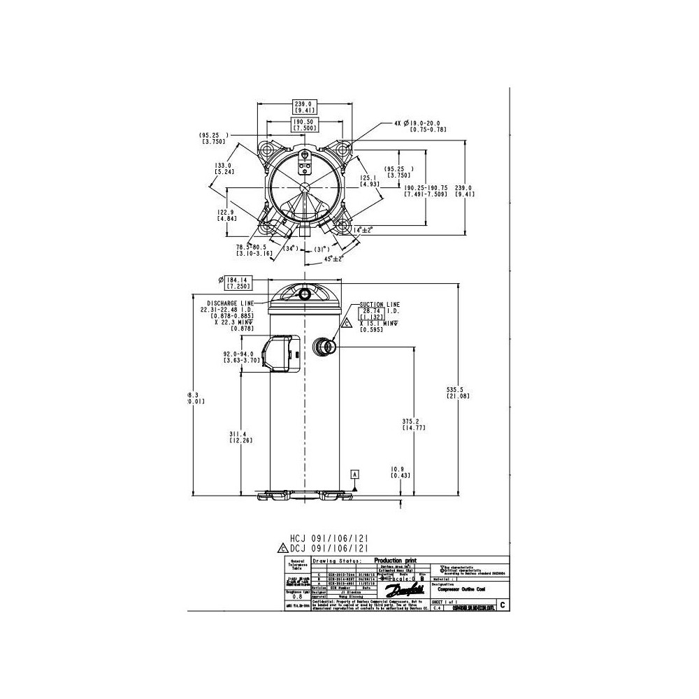 Danfoss DCJ091T2LC6A 7.5 tons 91.000 btu/h R410A Compresor Scroll para Aire Acondicionado 208-230/3/60 V/Ph/Hz Descarga 7/8 in, Succion 1-1/8 in, ODF, Aceite PVE 121L5003 Remplaza 121L5002, 121L8589 El compresor scroll de la serie H de Danfoss para R22/R407C/R410A esta disponible como compresor individual y se puede ensamblar en combinaciones en tandem Con conexiones de Linea de Liquido y Succion que se alinean con las de otros fabricantes importantes de compresores scroll, los compresores scroll de Danfoss se pueden usar para reemplazar los compresores fabricados por casi cualquier empresa Informacion Adicional: 2.46L PVE Carga de Aceite, Proteccion de Sobrecarga Interna