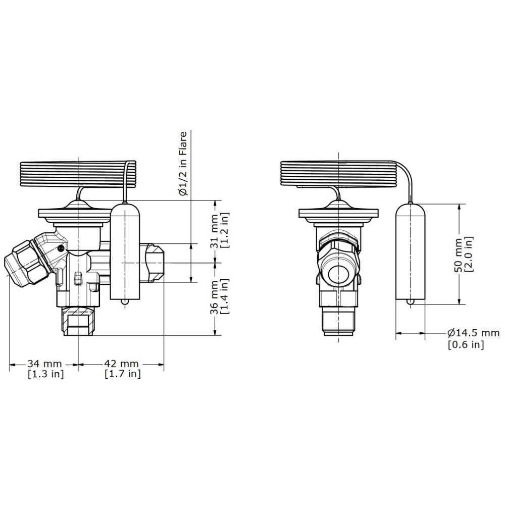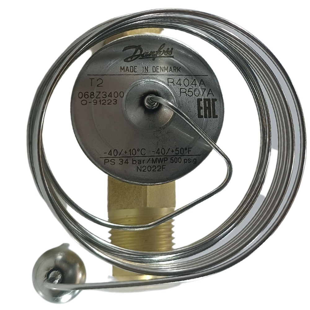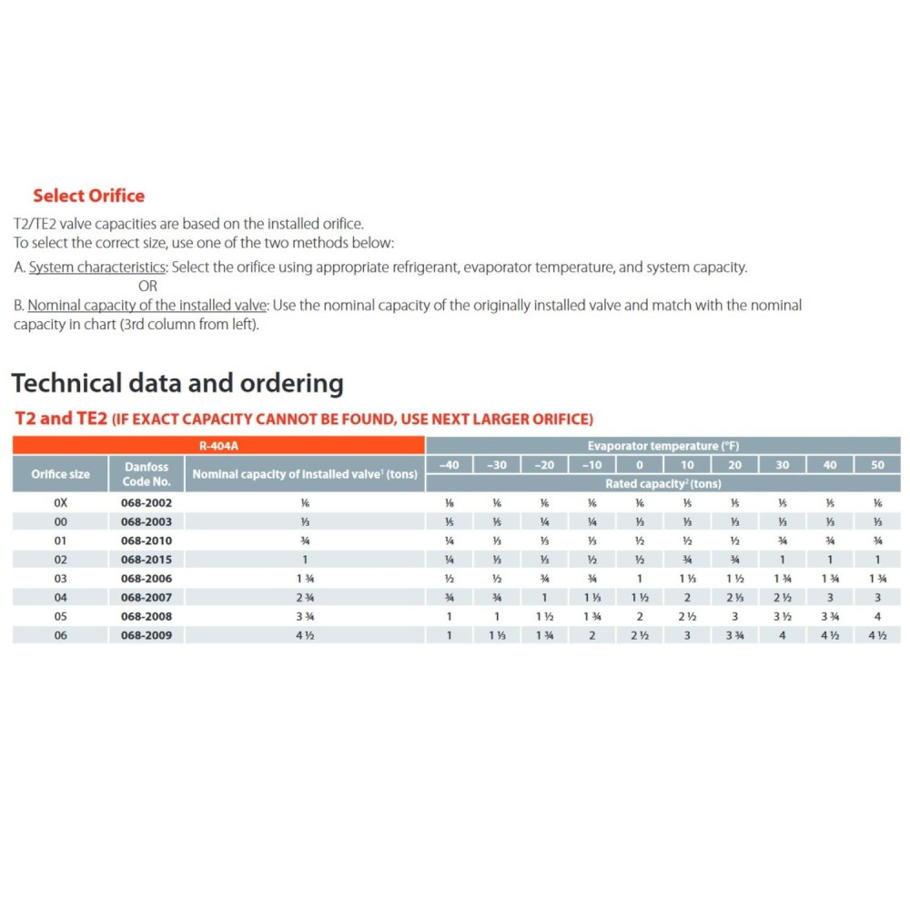 Danfoss 068Z3400 1/6 - 4.5TR Cuerpo de Valvula de Expansion, T2, R404A,R507A, 3/8x1/2in, Flare Roscable, Ecualizacion Interna, Single-flow, -40 a 10C, Capacidad determinada Segun Orificio, 0608Z3542