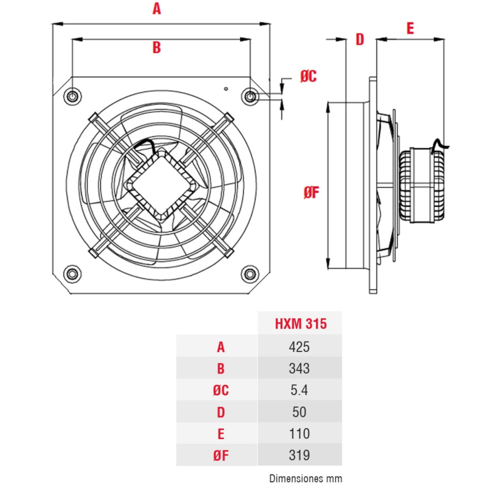 Extractor Axial Soler Palau Hxm 315 127v 1065cfm