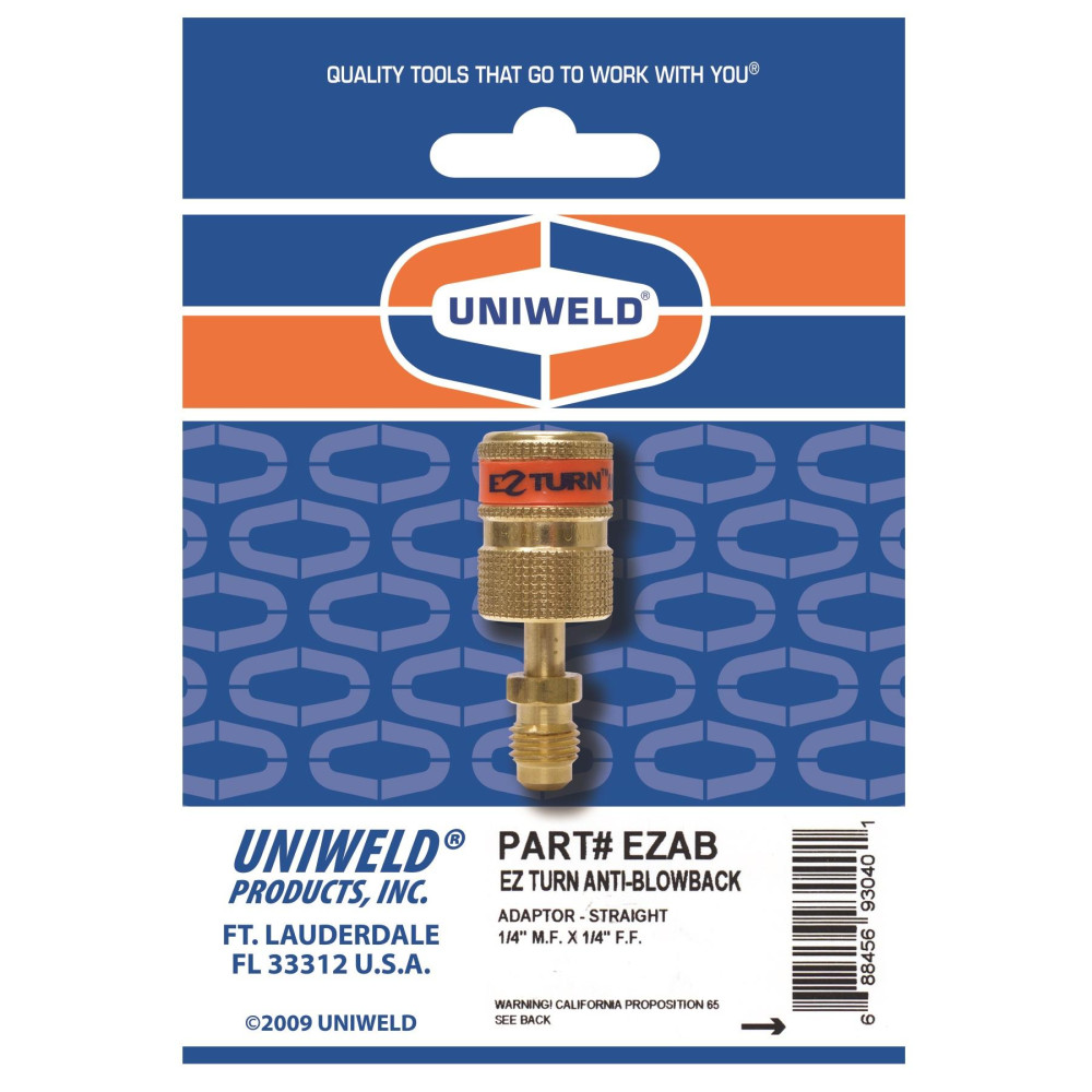 Uniweld EZAB Adaptador Ez-Turn Anti-Blowback 1/4 pulg MF x 1/4 pulg FF para R-410a, CFC, HCFC y HFC