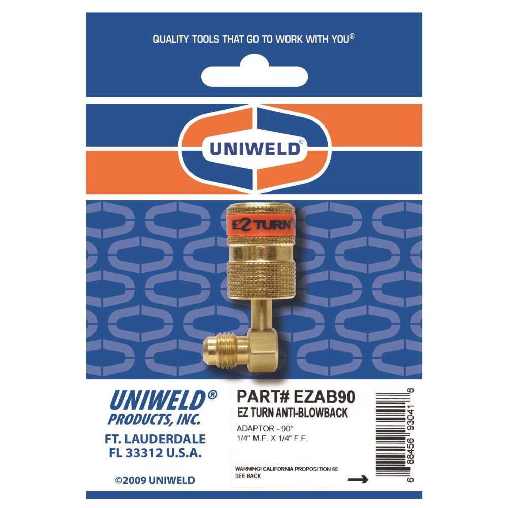 Uniweld EZAB90 Adaptador 1/4 pulg MF x 1/4 pulg FF, 90 grados, Ez-Turn Anti-Blowback para minisplit R-410a, CFC, HCFC,HFC